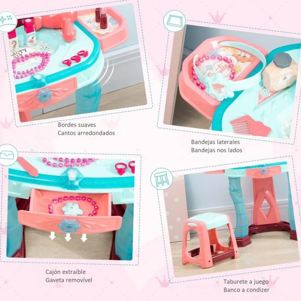 - Este tocador de princesa es ideal para que los niños se diviertan mientras desarrollan diversas habilidades.