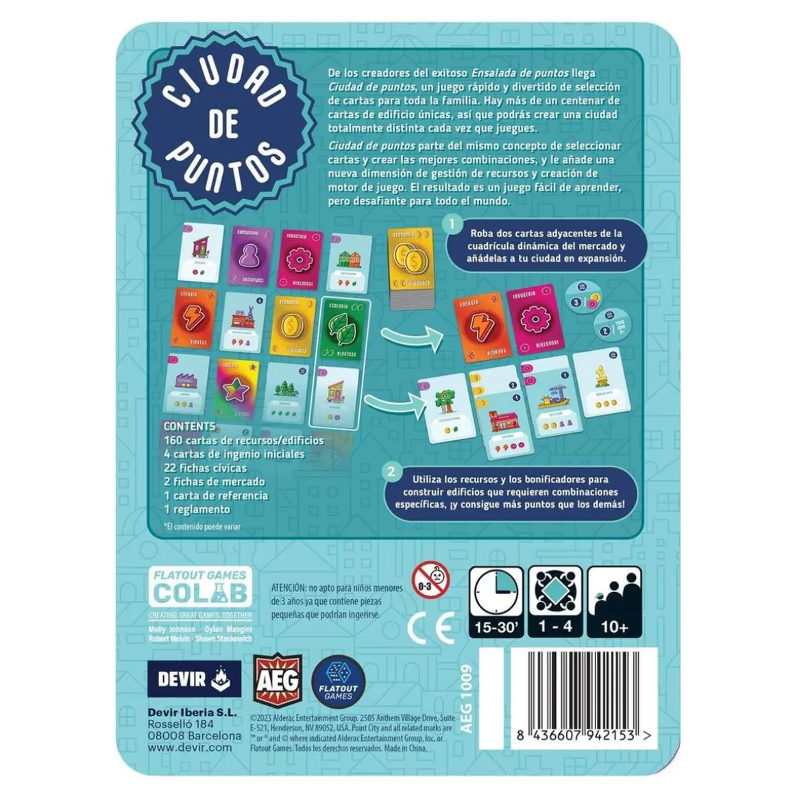 De los creadores de «Ensalada de Puntos» llega «Ciudad de Puntos», un juego rápido y entretenido que toda la familia disfrutará. Gracias a su modo en solitario, también podrás disfrutar del desafío de construir la ciudad más valiosa por tu cuenta.