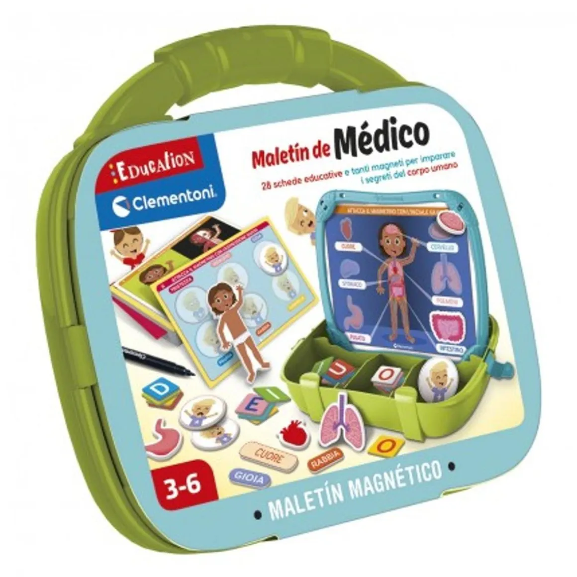 El «Clementoni – Maletín magnético de médico» es un juego ideal para los pequeños que sueñan con ser médicos, ofreciendo una forma divertida e interactiva de aprender sobre el cuerpo humano. Los niños pueden explorar las distintas partes del cuerpo usando piezas magnéticas, lo que hace que este proceso educativo sea mucho más visible y agradable. Además, el maletín incluye un folleto educativo que guía a los niños en su camino de aprendizaje, ayudándoles a entender mejor cómo funciona el cuerpo.
