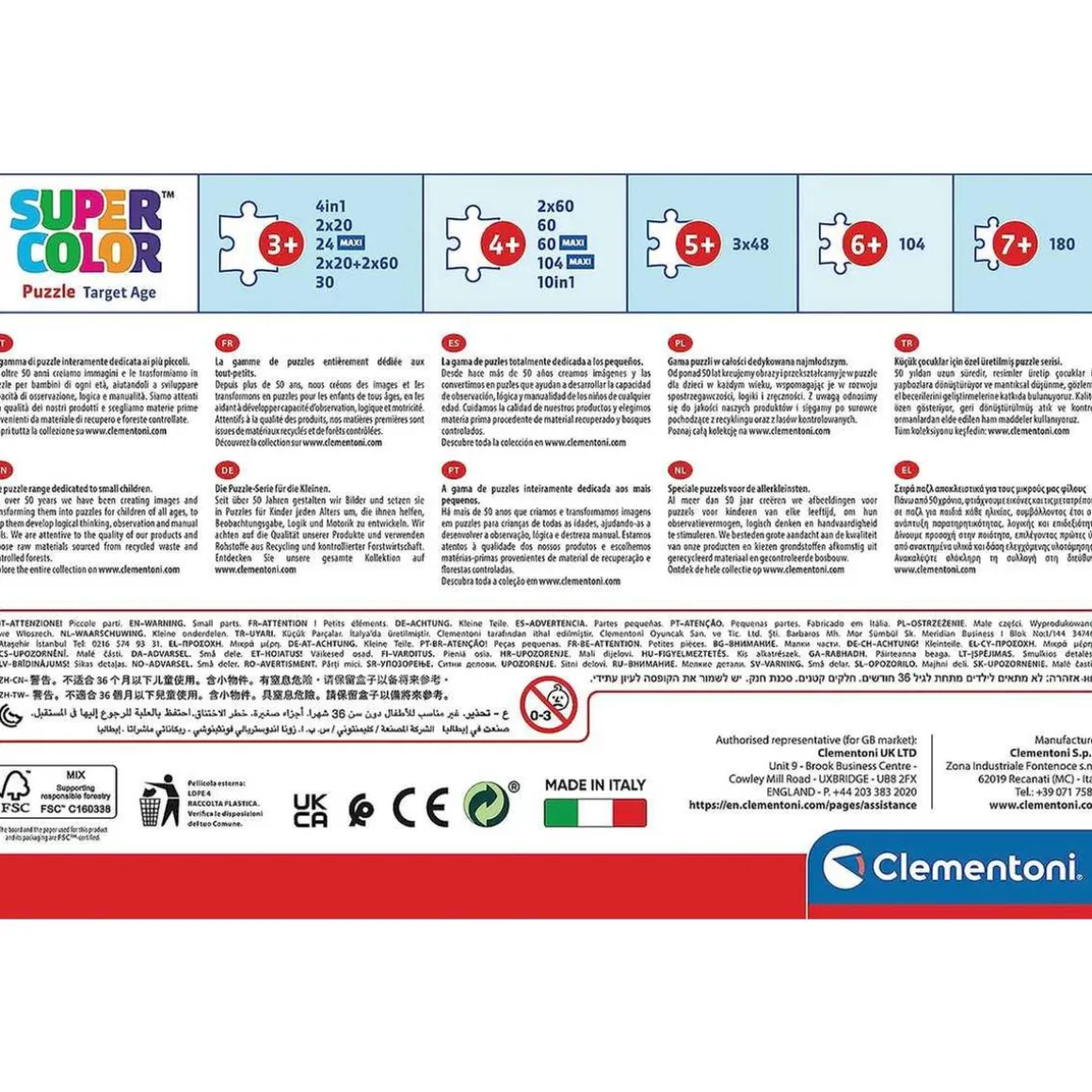 Advertencias de Seguridad: No apto para niños menores de la edad anteriormente indicada debido a la forma y el tamaño del juguete. No dejar al niño sin vigilancia con este articulo.