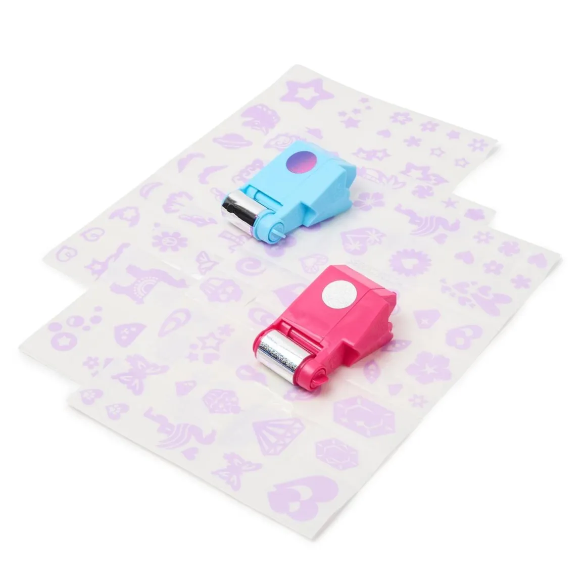 Crear tatuajes increíbles nunca ha sido tan sencillo. Con el rodillo especial y las calcomanías de doble cara, solo necesitan seleccionar su diseño favorito, aplicarlo sobre la piel y deslizar el rodillo para revelar un deslumbrante arte corporal. La facilidad del proceso hace que los más pequeños puedan disfrutar de una experiencia de creación artística gratificante y libre de complicaciones.