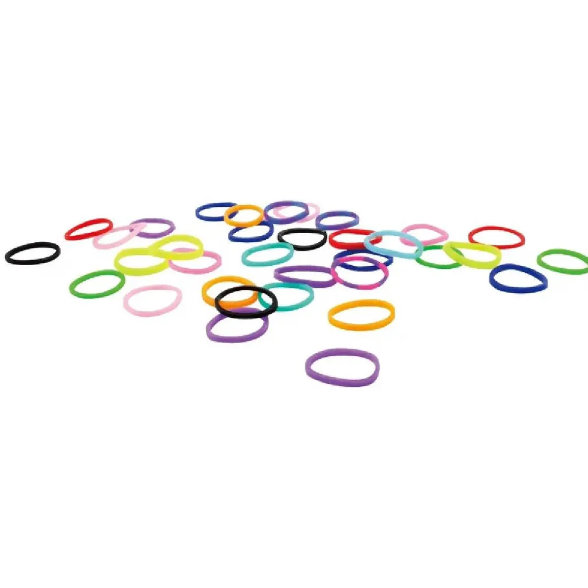 Incuye: 700 gomas de colores, 2 ganchillos y recipientes con cuentas reutilizables.