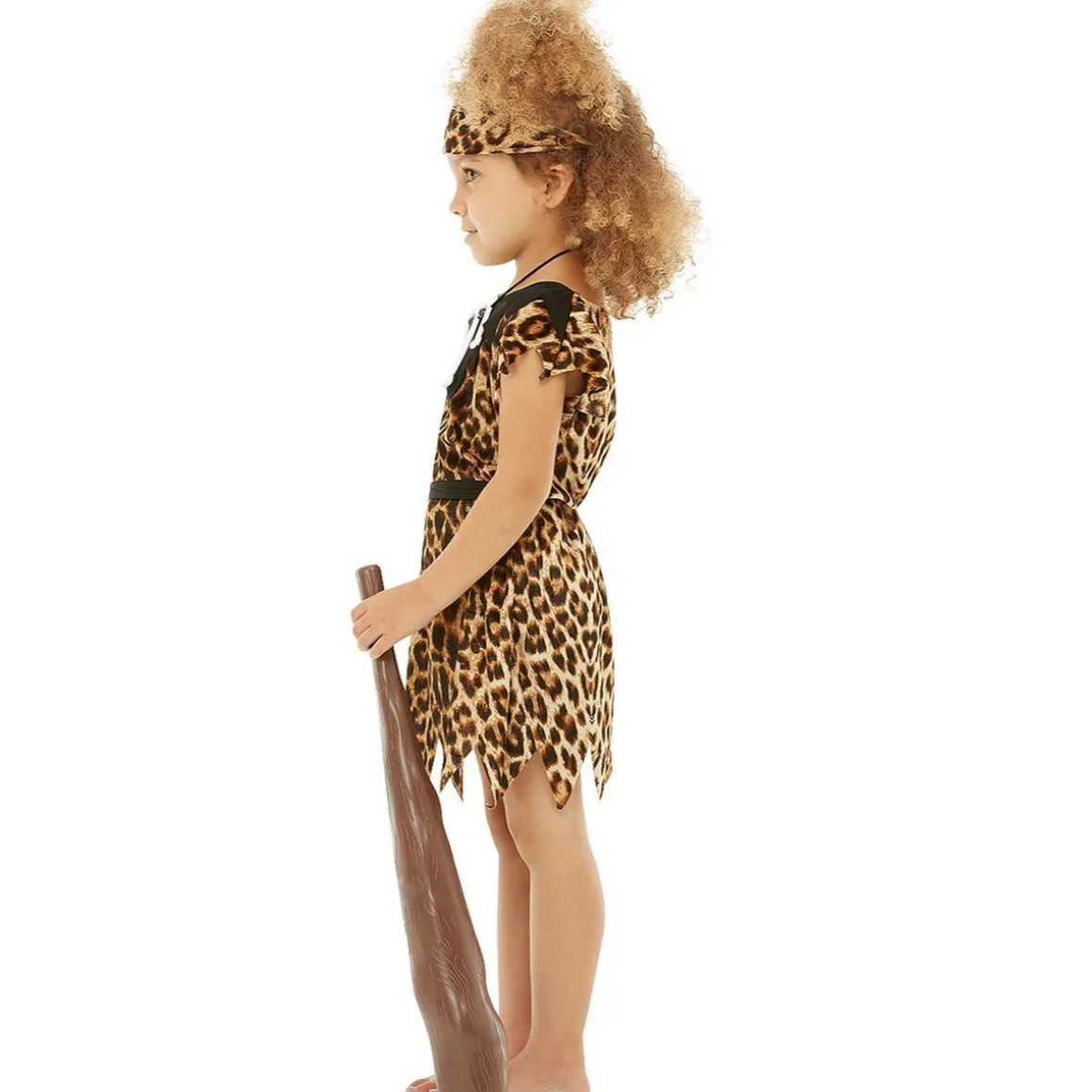 Explora la prehistoria con el Disfraz de cavernícola para niños. Incluye un vestido, cinturón y cinta para la cabeza, todo fabricado en 100% poliéster. Perfecto para carnavales, juegos de rol o funciones escolares. ¡Diversión prehistórica asegurada!