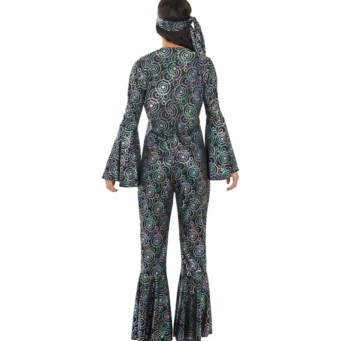 Brillo retro en su máxima expresión con este mono ajustado de poliéster reflectante. Completo con cinta luminosa para la cabeza que recrea el auténtico espíritu de las pistas de baile seventies. ¡Perfecto para arrasar en noches disco!