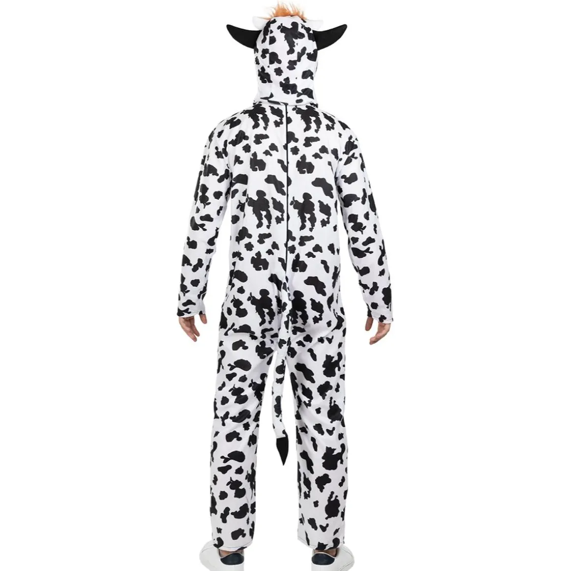 Un clásico que nunca falla para animación y comparsas. En talla L-XL, el disfraz de vaca combina un mono amplio de manchas con una pieza para la cabeza que integra orejas y cuernos redondeados. Es cómodo, fácil de poner y perfecto para desfiles, campañas solidarias o fiestas de granja. El patrón holgado permite llevar ropa debajo si la celebración es al aire libre. Funciona genial en grupo con otros animales y garantiza fotos divertidas sin esfuerzo.