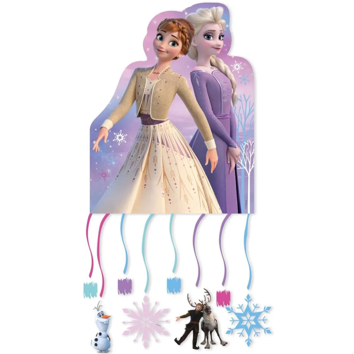 Los fanáticos de Frozen quedarán encantados con los detallados diseños que incluyen a los queridos personajes Elsa, Anna, Olaf, Kristoff y Sven, que adornan esta colorida piñata. No solo proporcionará entretenimiento sino que también sumará magia a la decoración con sus vivos colores y motivos inspirados en la película.