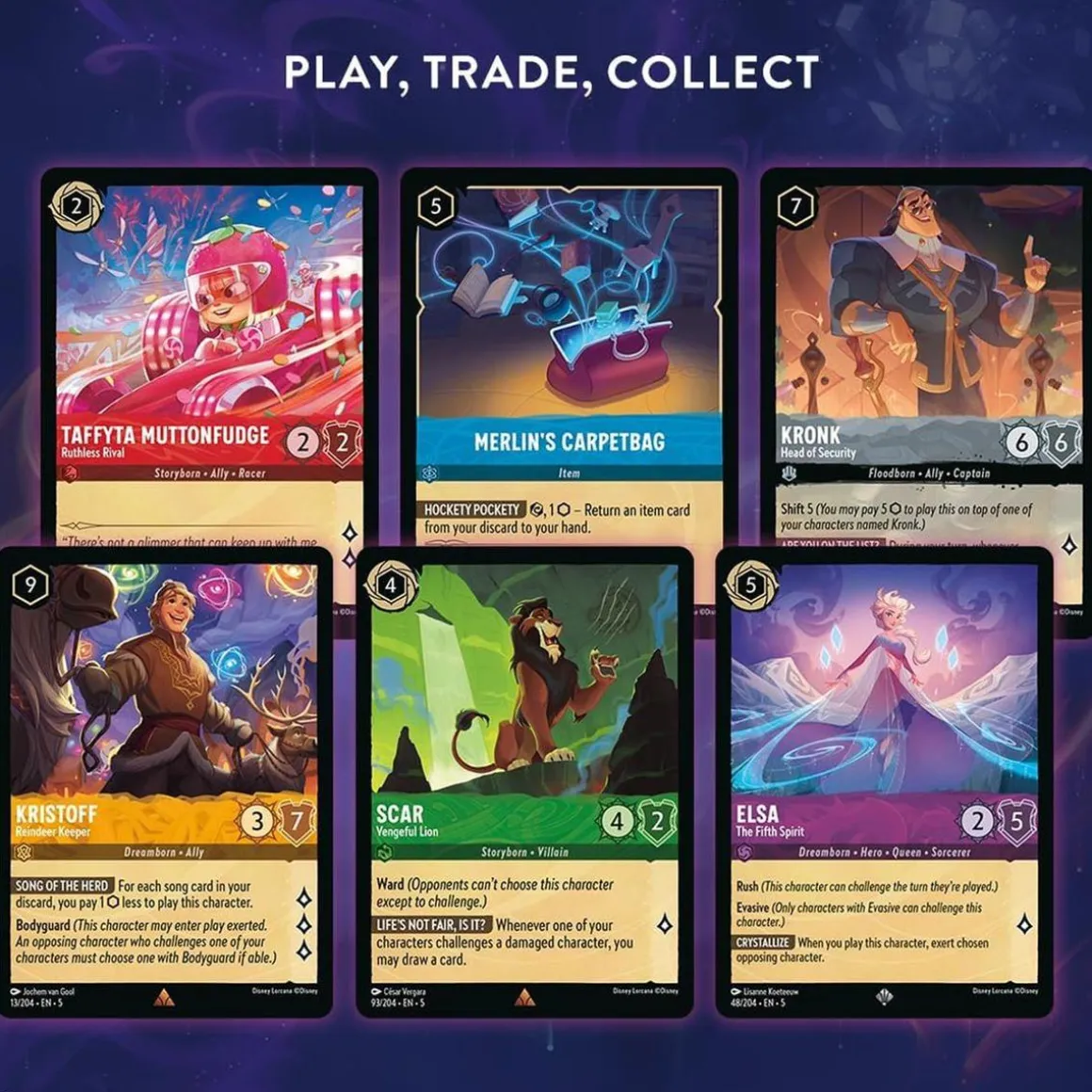 Disfruta de más de 200 ilustraciones originales de Disney que hacen de este juego una colección única. Cada carta es una obra de arte que te transportará al mundo de tus historias y personajes favoritos.