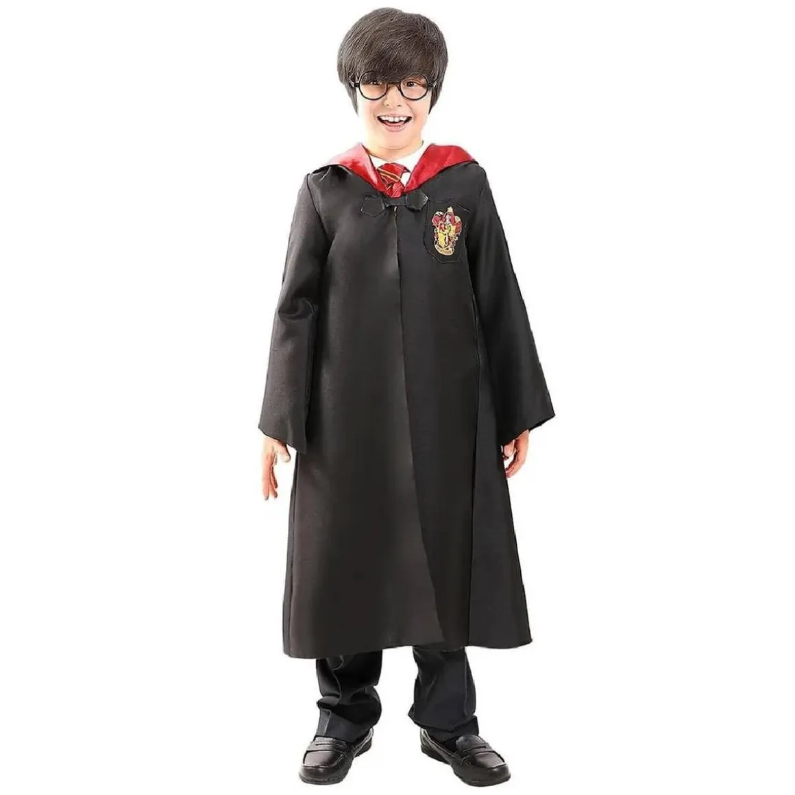 - Incluye: Túnica negra, corbata a rayas, gafas redondas y varita mágica.