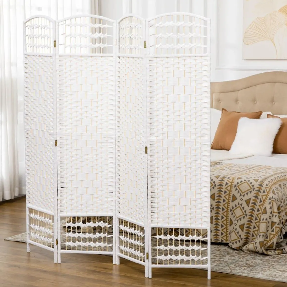Homcom – Biombo de cuerda de papel 4 paneles, un separador de habitaciones de 4 paneles que crea un espacio privado e independiente en cualquier espacio de tu hogar. Ideal para dormitorios, salas de estar, oficinas, etc.