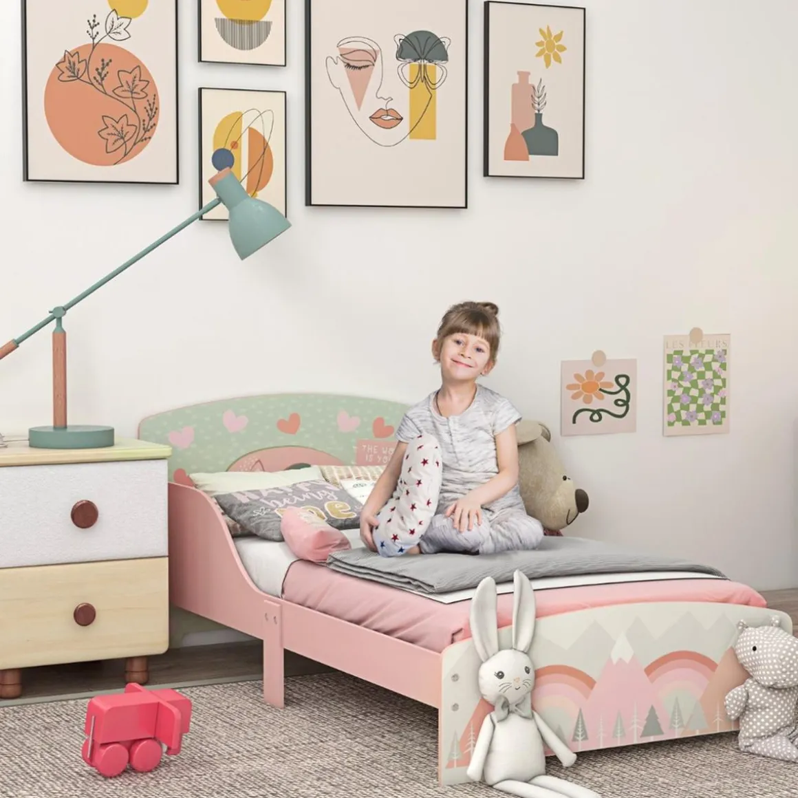 Homcom – Cama infantil Montañas Rosa
