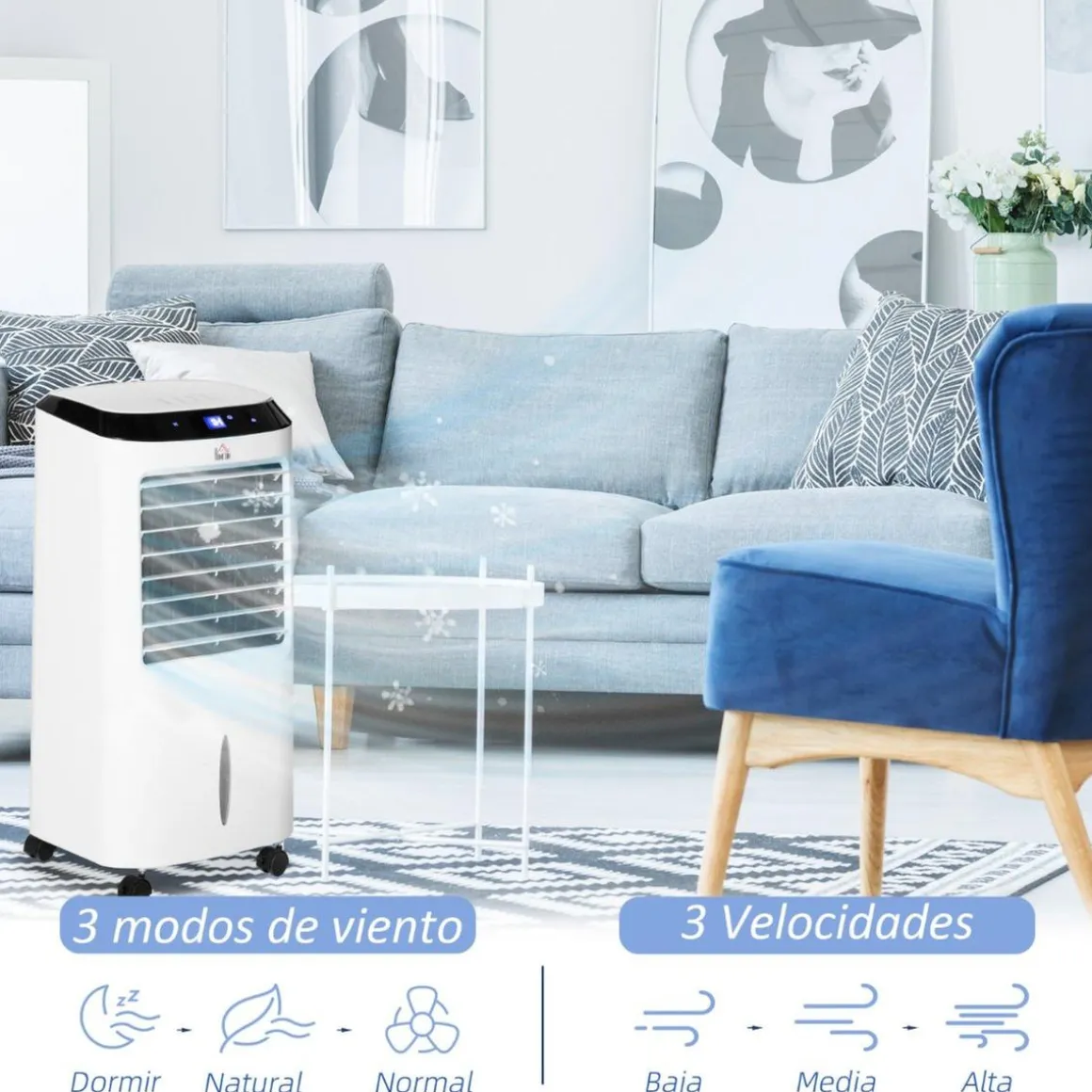 Homcom – Climatizador Evaporativo, un enfriador de aire portátil de bajo consumo con 4 modos de funcionamiento, ventilador, refrigeración con hielo, humidificador y ionización.