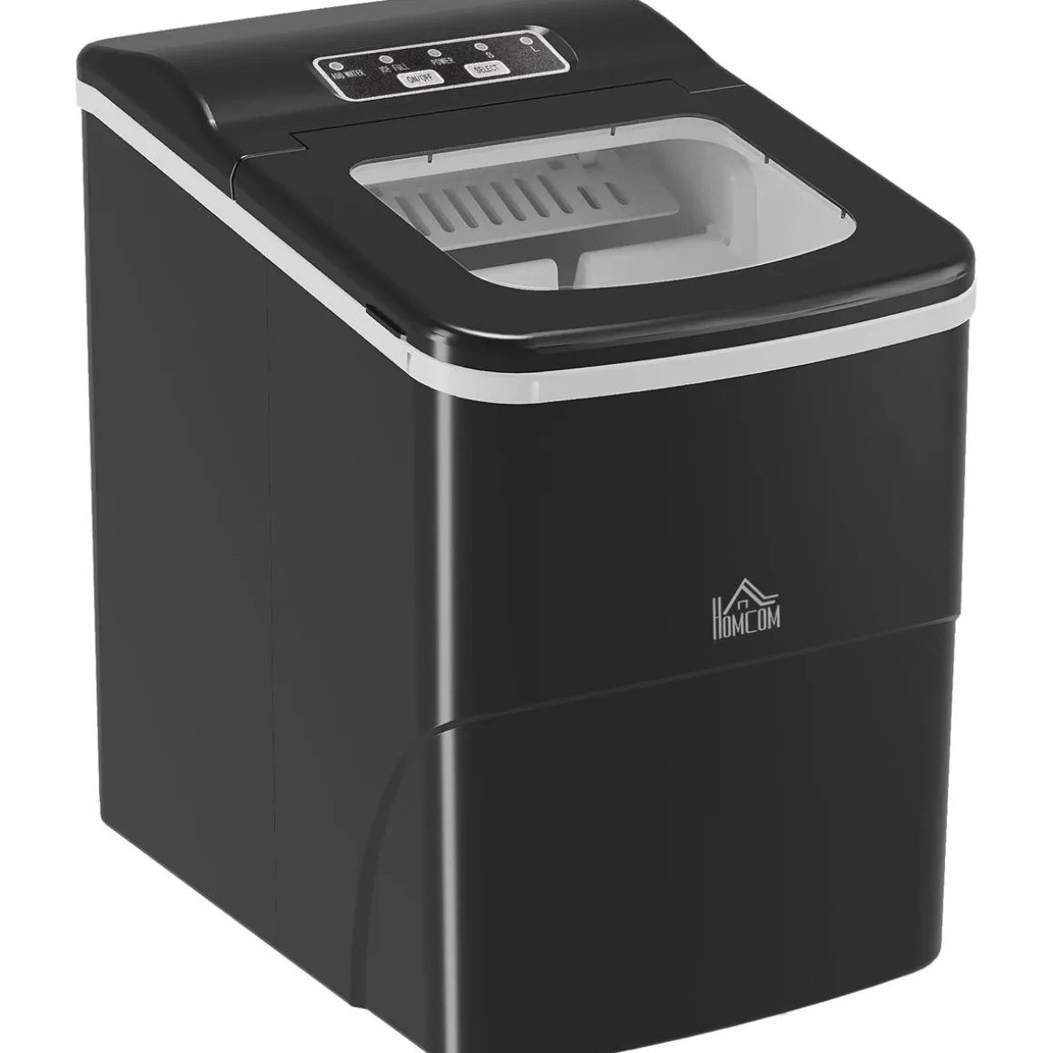 HOMCOM – Máquina Hielo Negro 90W, máquina para hacer hielo que produce 12kg de cubitos de hielo al día.