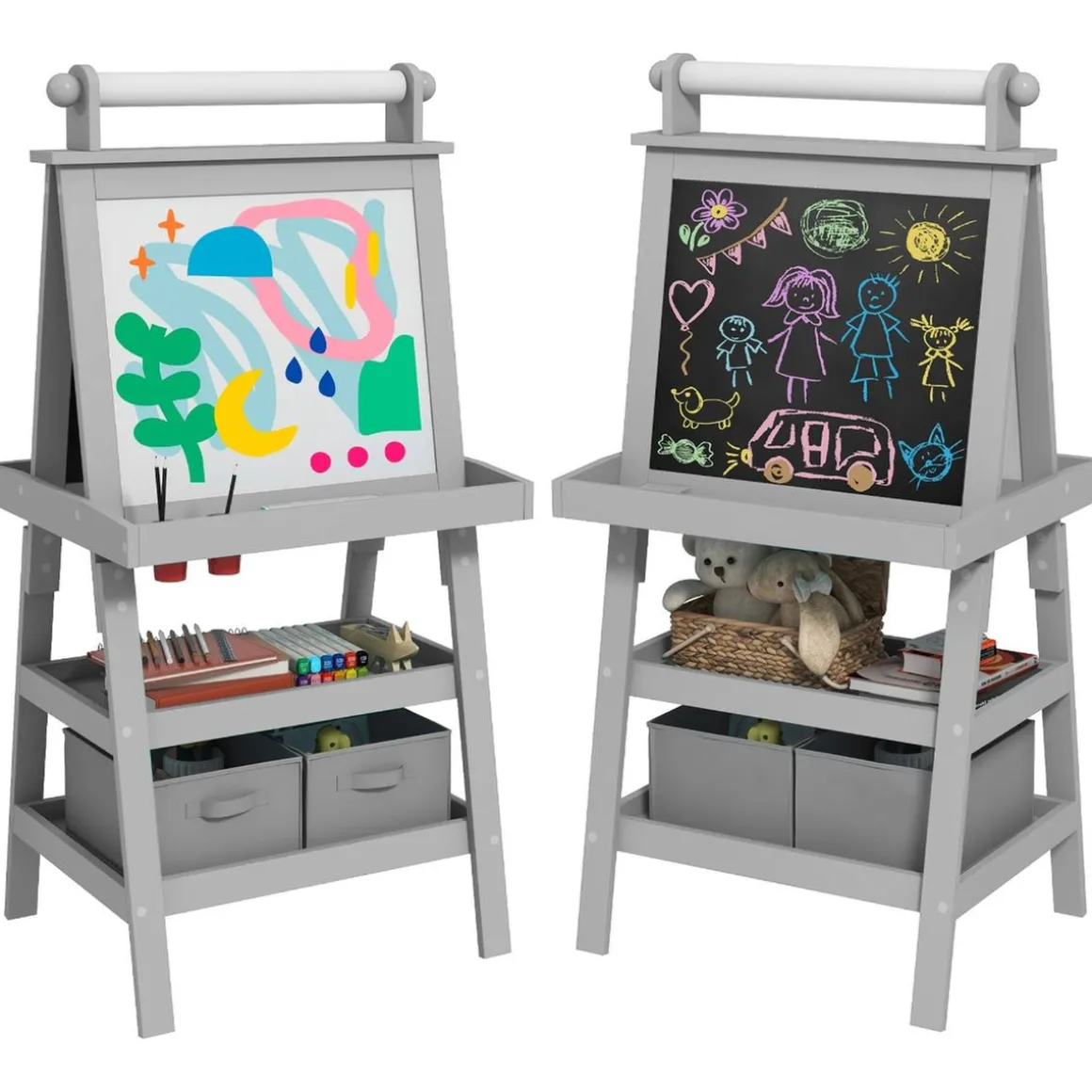 Inspira la creatividad de tu hijo con este caballete multifuncional. Con una pizarra negra, una pizarra blanca magnética y un rollo de papel, este producto 3 en 1 es perfecto para que los pequeños artistas desarrollen su imaginación. Además, incluye compartimentos para mantener todos los materiales organizados. ¡Una herramienta educativa que combina aprendizaje y diversión!