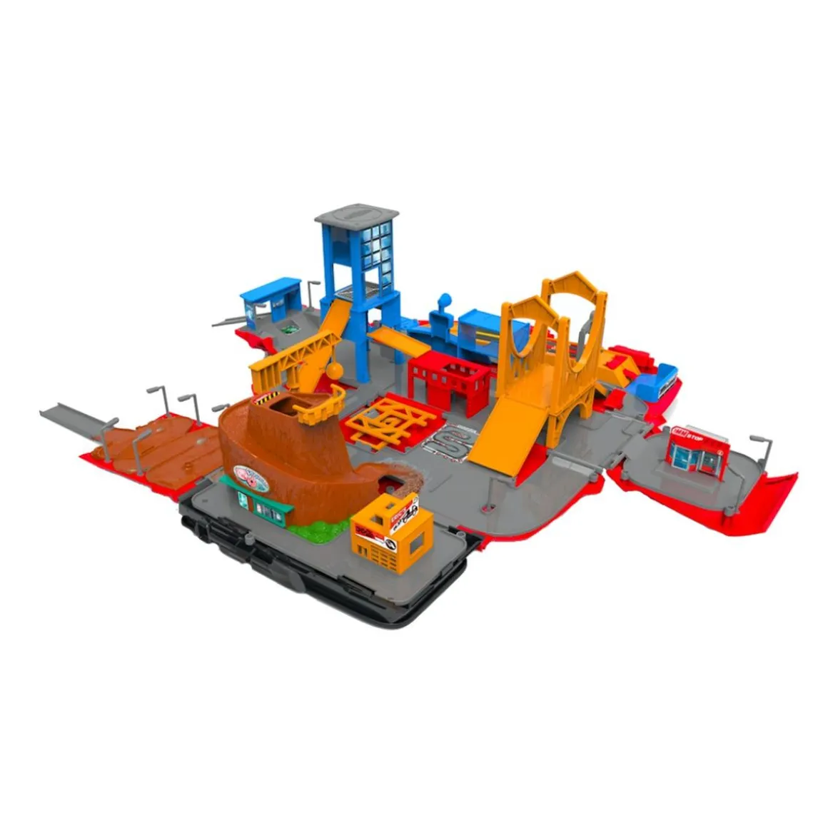 Incluye un puente, un área en construcción, un edificio de gran altura, una pista de carreras, muchas rampas y la capacidad de conectarse a otros juegos. Además incluye 1 vehículo.