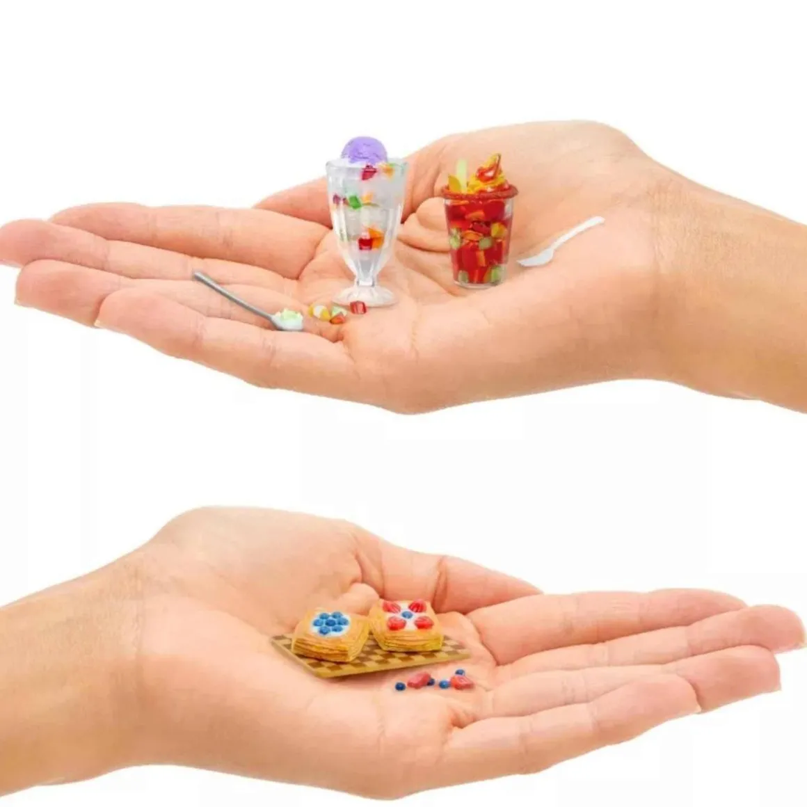 Dentro de cada paquete, encontrarás mini ingredientes realistas y accesorios para crear réplicas en miniatura de tus platos, bebidas y postres favoritos. Cada paquete es una sorpresa, ¡así que nunca sabes qué mini receta te tocará! Compara el contenido con la guía del coleccionista incluida para identificar tu miniatura.