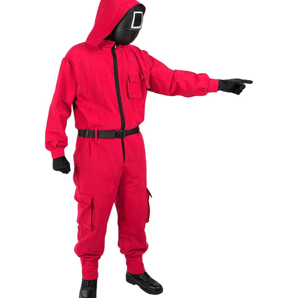 Adéntrate en el universo de El Juego del Calamar con este impresionante Mono oficial Netflix para adulto. Este set incluye un mono rojo con capucha, cinturón y guantes, elaborado en 100% poliéster. Ideal para fiestas temáticas, cosplay o eventos especiales. ¡Conviértete en uno de los misteriosos guardias de esta icónica serie y deja a todos sorprendidos!