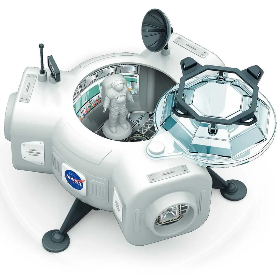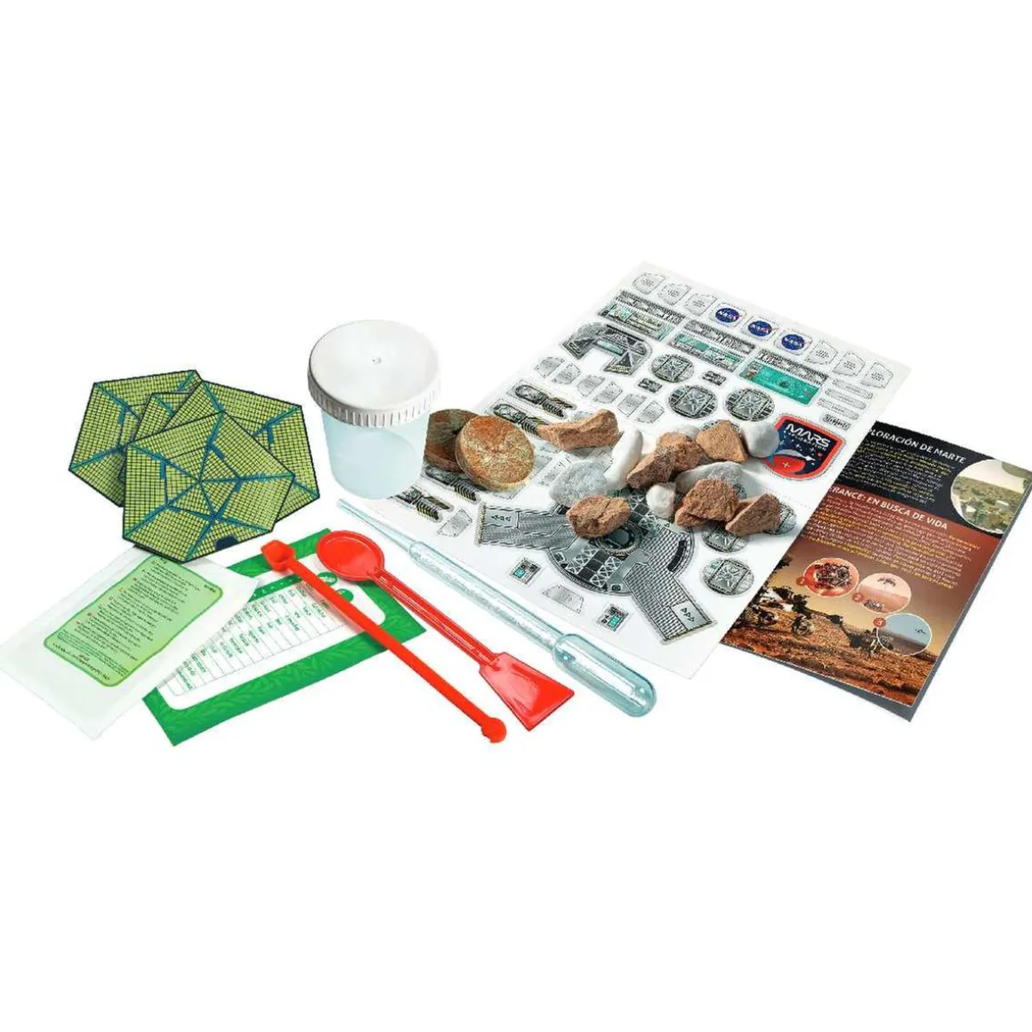 Incluye módulos para experimentos científicos y un Rover espacial para explorar el planeta rojo.