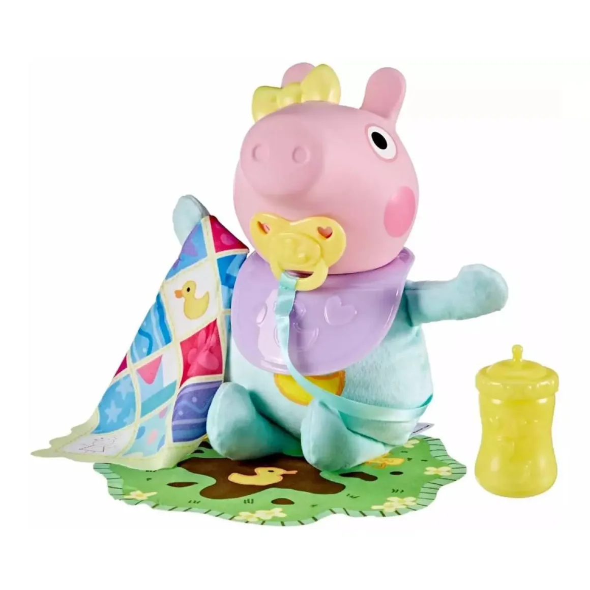 Peppa Pig – Evie Gruñidos y Abrazos es la adorable hermanita de Peppa y George en su versión más divertida. Esta muñeca bebé interactiva está diseñada para ofrecer una experiencia emocionante a los pequeños fans de Peppa Pig, con más de 20 reacciones y detalles encantadores.