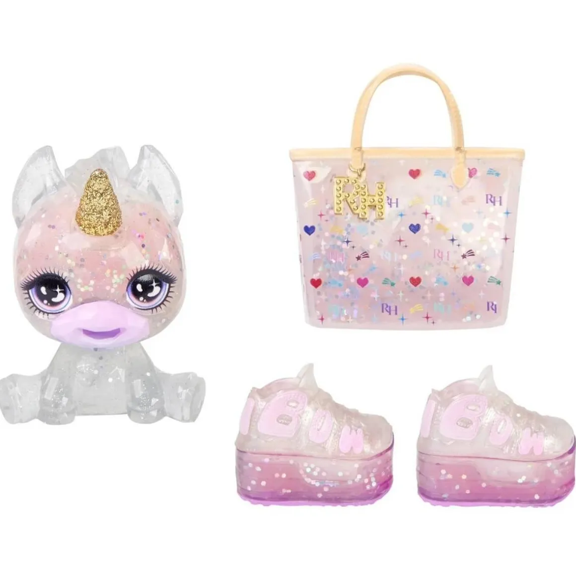 Amaya trae un adorable unicornio mágico como mascota, Rainbowie, que tiene un cuerno brillante. En el paquete encontrarás slime prefabricado, al que puedes agregar brillo y llenar tu mascota, bolso o zapatos con slime brillante para que cambien de color. Se puede utilizar muchas veces y es muy fácil de limpiar.