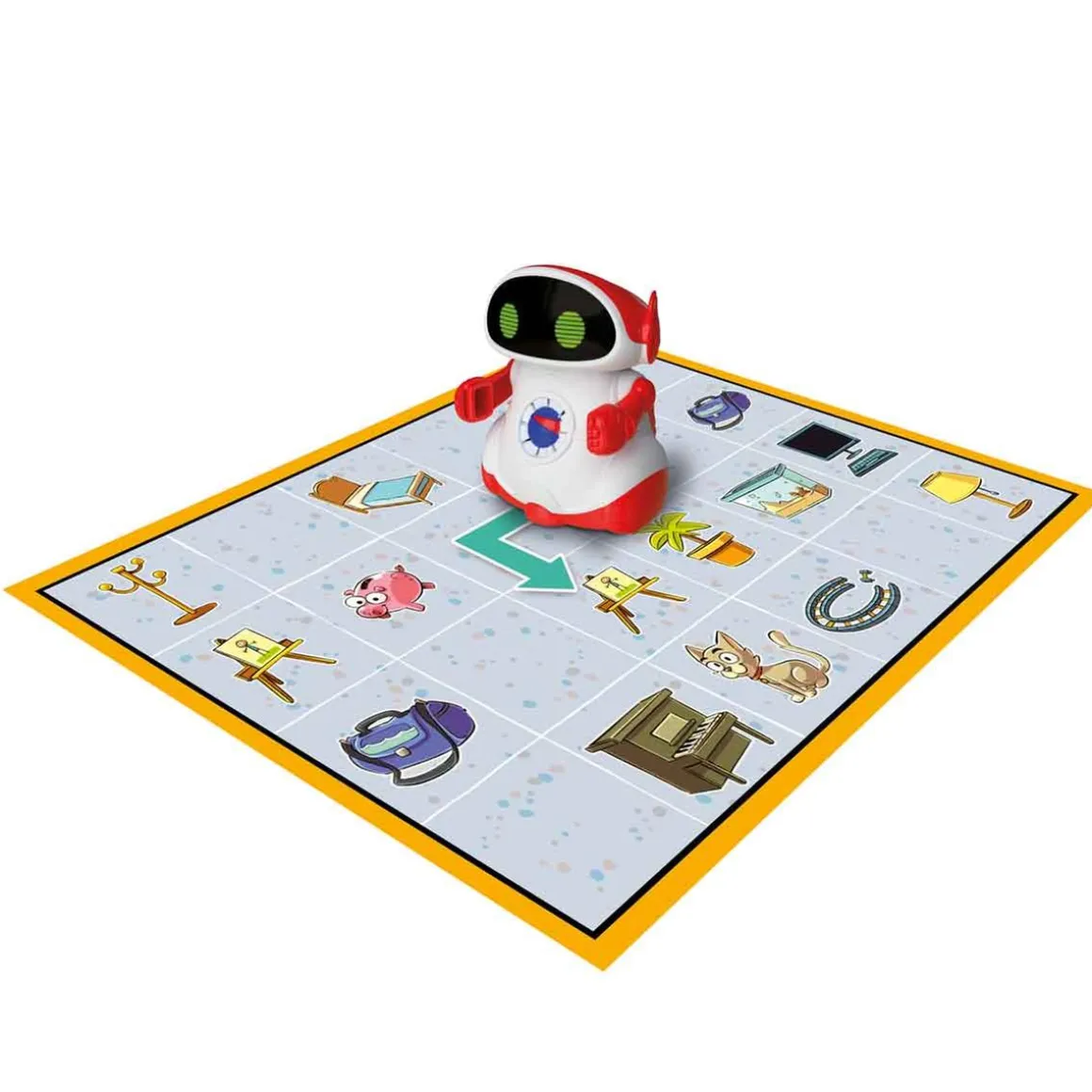 Monta el tablero libremente con las diferentes piezas y seguirá tus ordenes, o resuelve los desafíos con sus cartas para 2 jugadores.