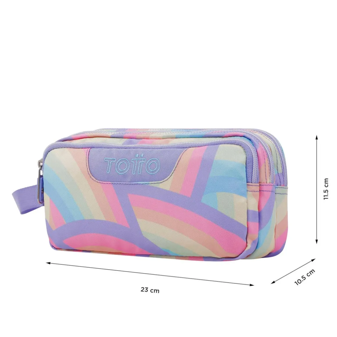 Totto – Estuche escolar tres compartimentos arcoíris Agapec, un estuche escolar con tres espaciosos compartimentos con cremallera.