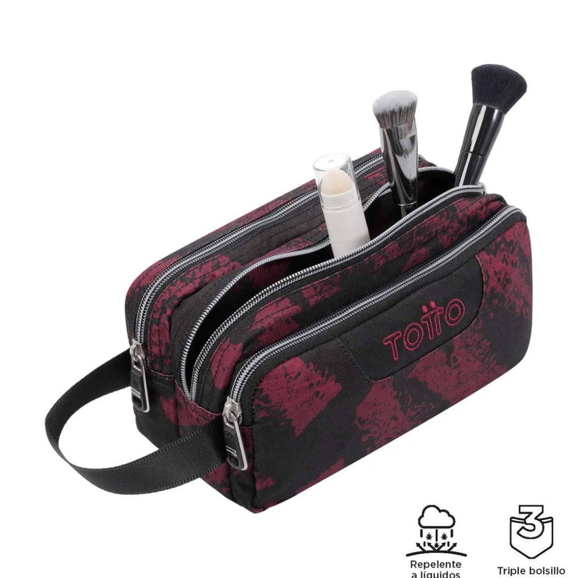 Totto – Estuche escolar tres compartimentos tiza roja Agapec, un estuche escolar con tres espaciosos compartimentos con cremallera.