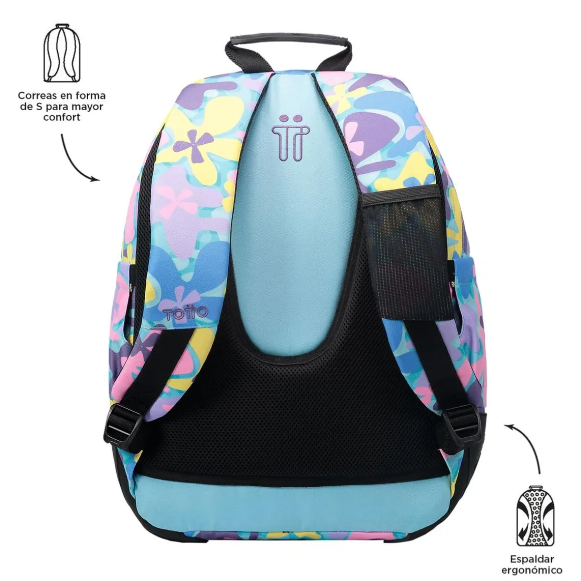 Totto – Mochila escolar flores hawaianas Crayoles, una mochila escolar de la colección Crayoles.