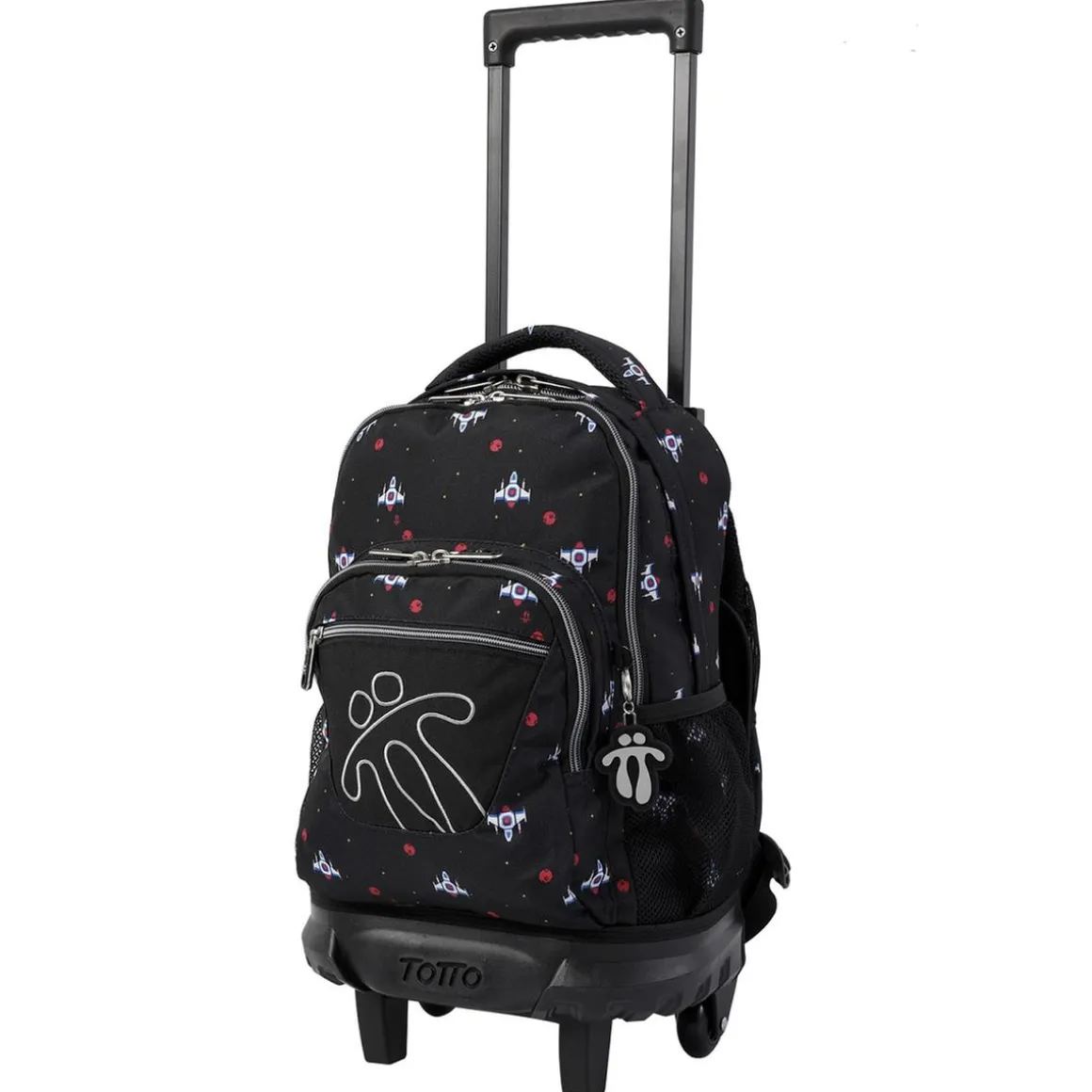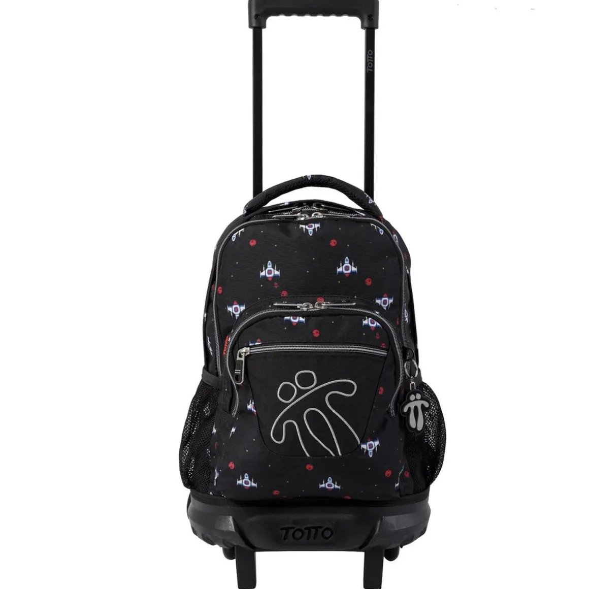 Totto – Mochila escolar pequeña con ruedas Resma – Naves espaciales, una mochila escolar con carro integrado ideal para los primeros cursos en donde los libros y cuadernos no son muchos.