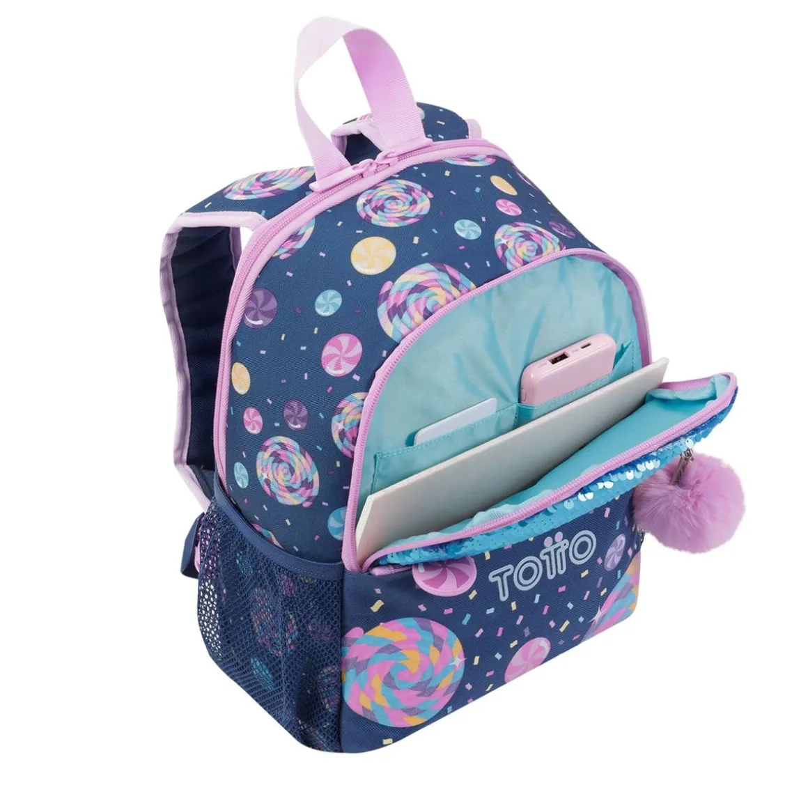 Totto – Mochila escolar pequeña Sweet Candy, una mochila con dulces y piruletas de la colección Sweet Candy.