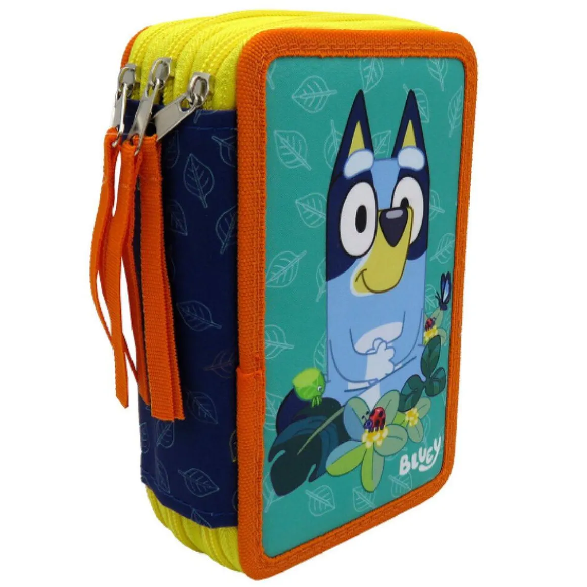 Bluey – Plumier triple Leaves, un plumier de tres pisos con todo lo que necesitas para los trabajos escolares.
