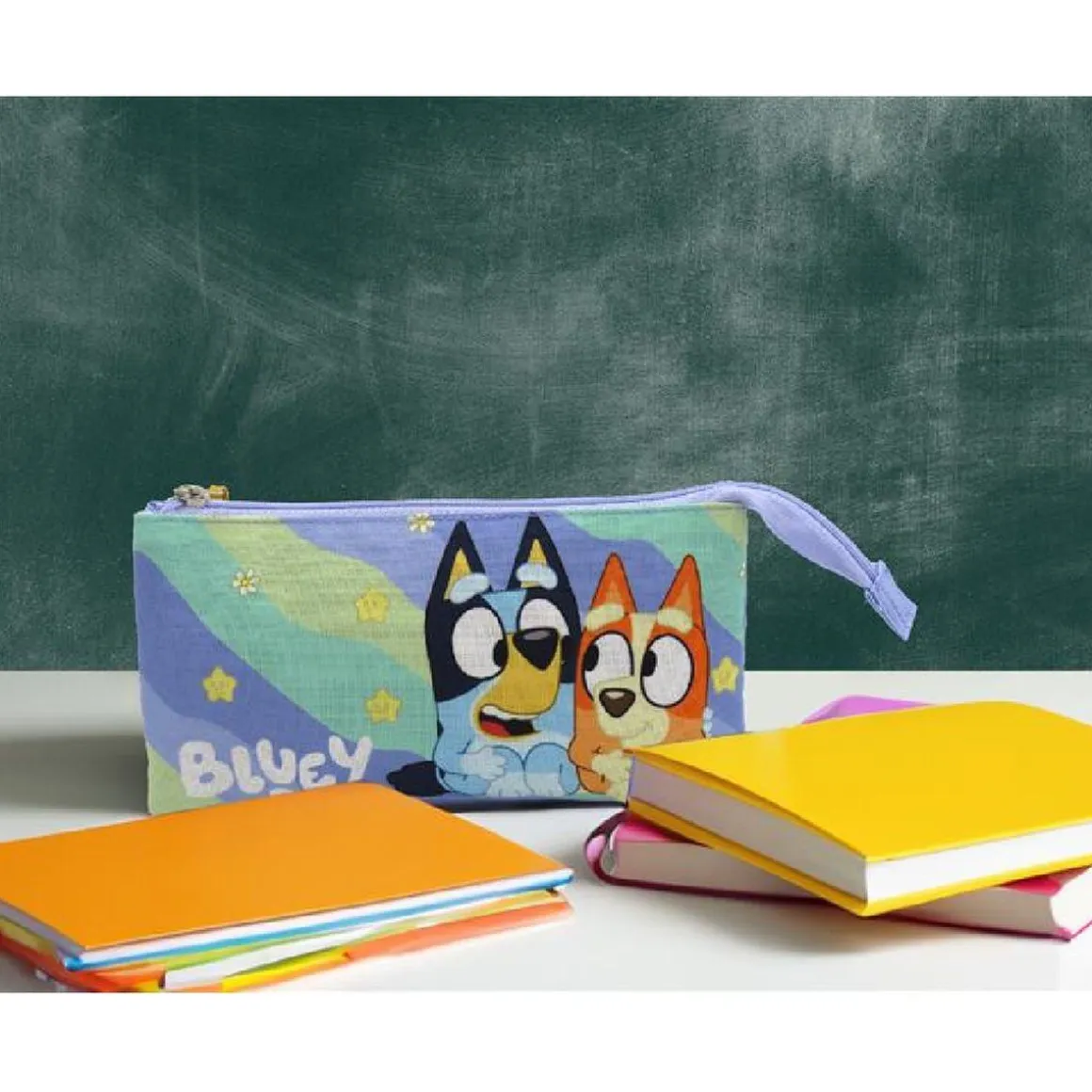 Marca estilo con este estuche triple con un colorido diseño de Bluey y Bingo. Además podrás complementarlo con el resto de accesorios de la colección Bluey (se venden por separado). ¡Diviértete y aprende con Bluey! Este estuche con Bluey y Bingo será el mejor compañero de clase para los más pequeños de la casa.
