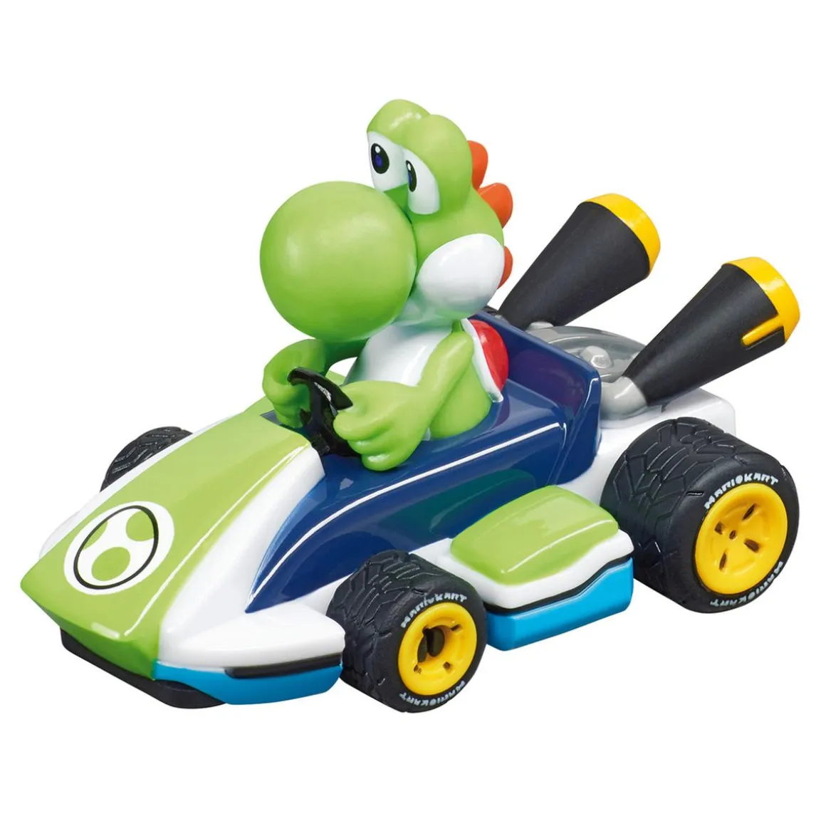 Este pack está compuesto por 2 coches a escala 1:51 (1 de Mario y 1 de Yoshi), controlador de 2 velocidades y muchos más accesorios.