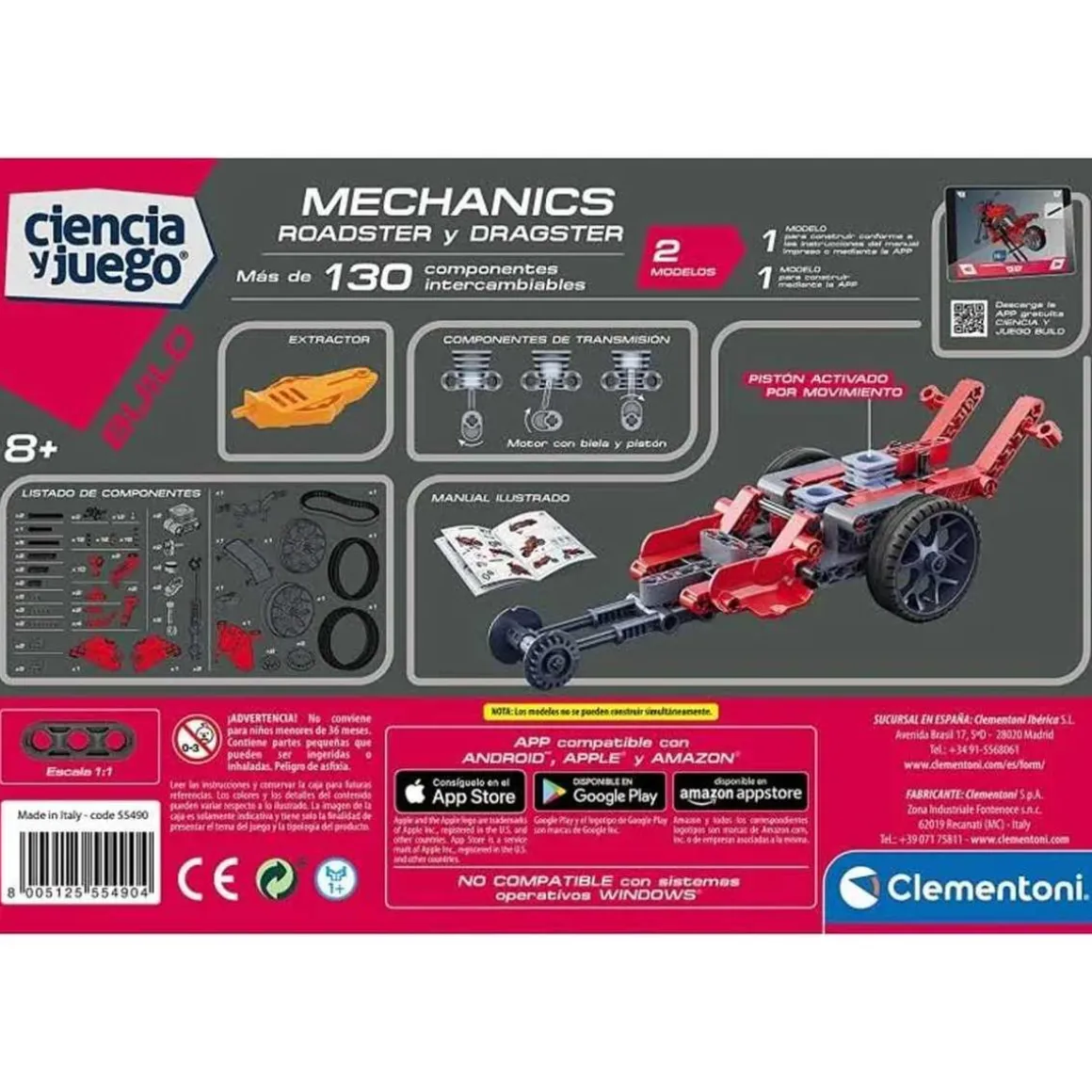 ¡Prepárate para divertirte y aprender al mismo tiempo con el juego educativo de ciencia y construcciones Clementoni Mechanics Roadster And Dragster! Con más de 90 piezas, podrás armar y desarmar dos modelos diferentes de vehículos: un elegante Roadster y un poderoso Dragster. Este juego te permitirá explorar distintos conceptos de ingeniería y mecánica básica mientras disfrutas montando tus propios coches.