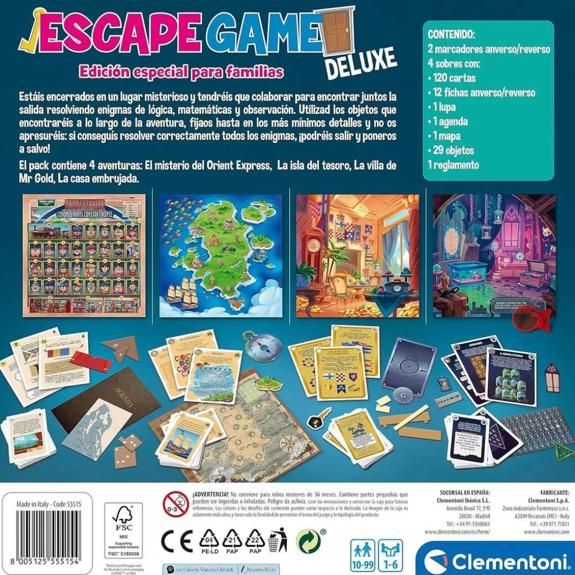 Presentamos el fascinante «Clementoni – Juego de mesa estrategia multicolor deluxe». Este completo juego de mesa y estrategia es perfecto para aquellos que disfrutan de los desafíos mentales, los misterios y los enigmas por resolver. Permite a los jugadores participar en cuatro emocionantes aventuras, recreando la emoción de una verdadera escape room, en la que deberán resolver acertijos para poder salir de las habitaciones.