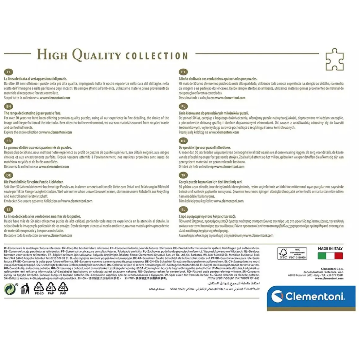 Este puzzle pertenece a la gama de rompecabezas de Clementoni, reconocida por la calidad de sus piezas y la belleza de sus imágenes. Un puzzle de 1000 piezas que se convierte en un verdadero desafío, incluso para los más expertos.