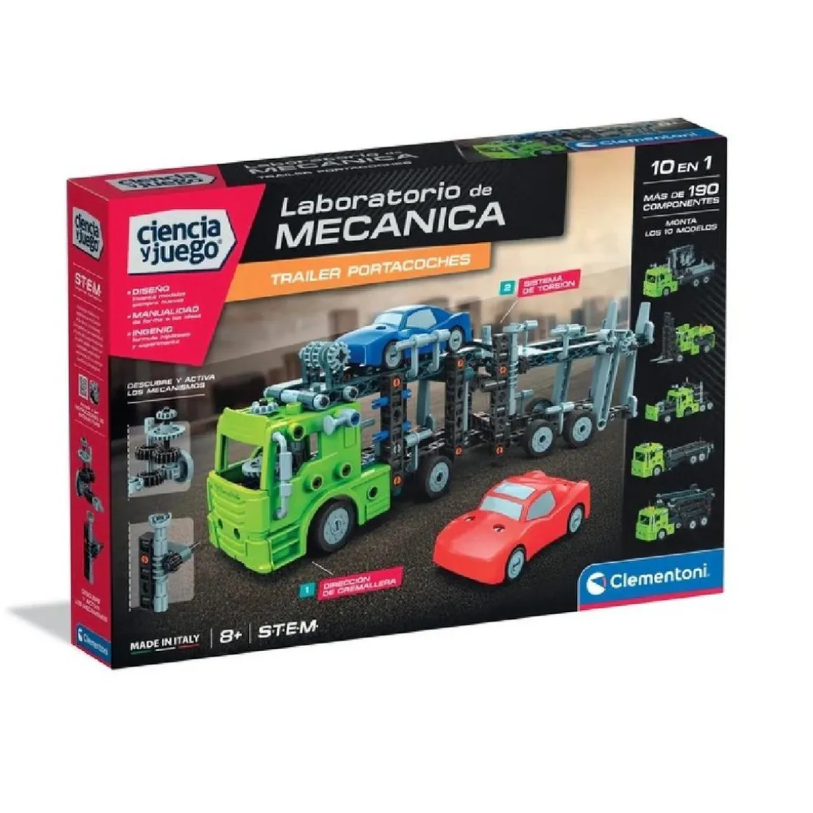 Al ensamblar los diferentes componentes, los niños pueden poner a prueba sus ideas, experimentar y comprobar por sí mismos si las soluciones que encuentran son correctas o si pueden mejorar el diseño. Es una excelente manera de aprender sobre mecánica y construcción de forma práctica y entretenida. Este set ha sido fabricado en Italia.