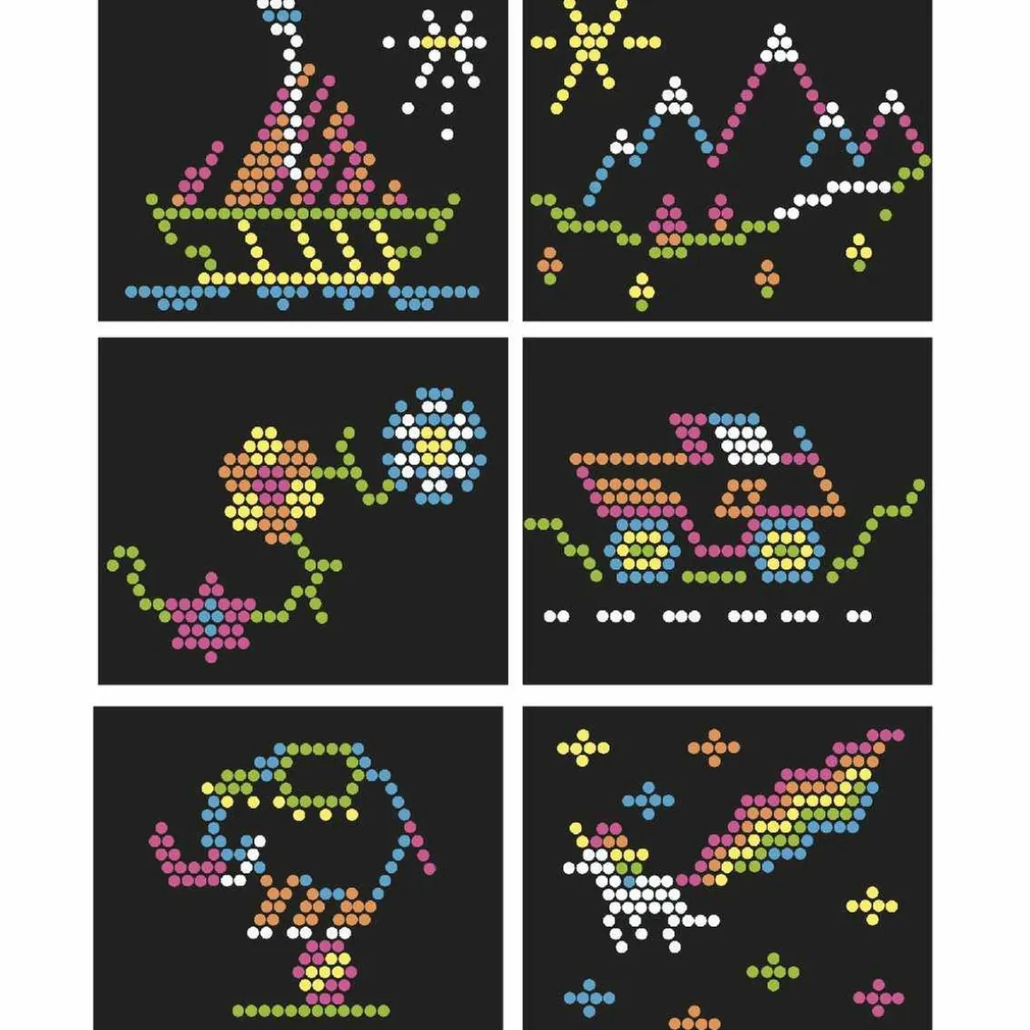 Ofrece 4 espectáculos de luces diferentes que añaden un toque mágico a tu arte: intermitente, pulsante, continuo y aleatorio. Viene con más de 200 clavijas redondas en blanco, amarillo, azul, rosa, naranja y verde.