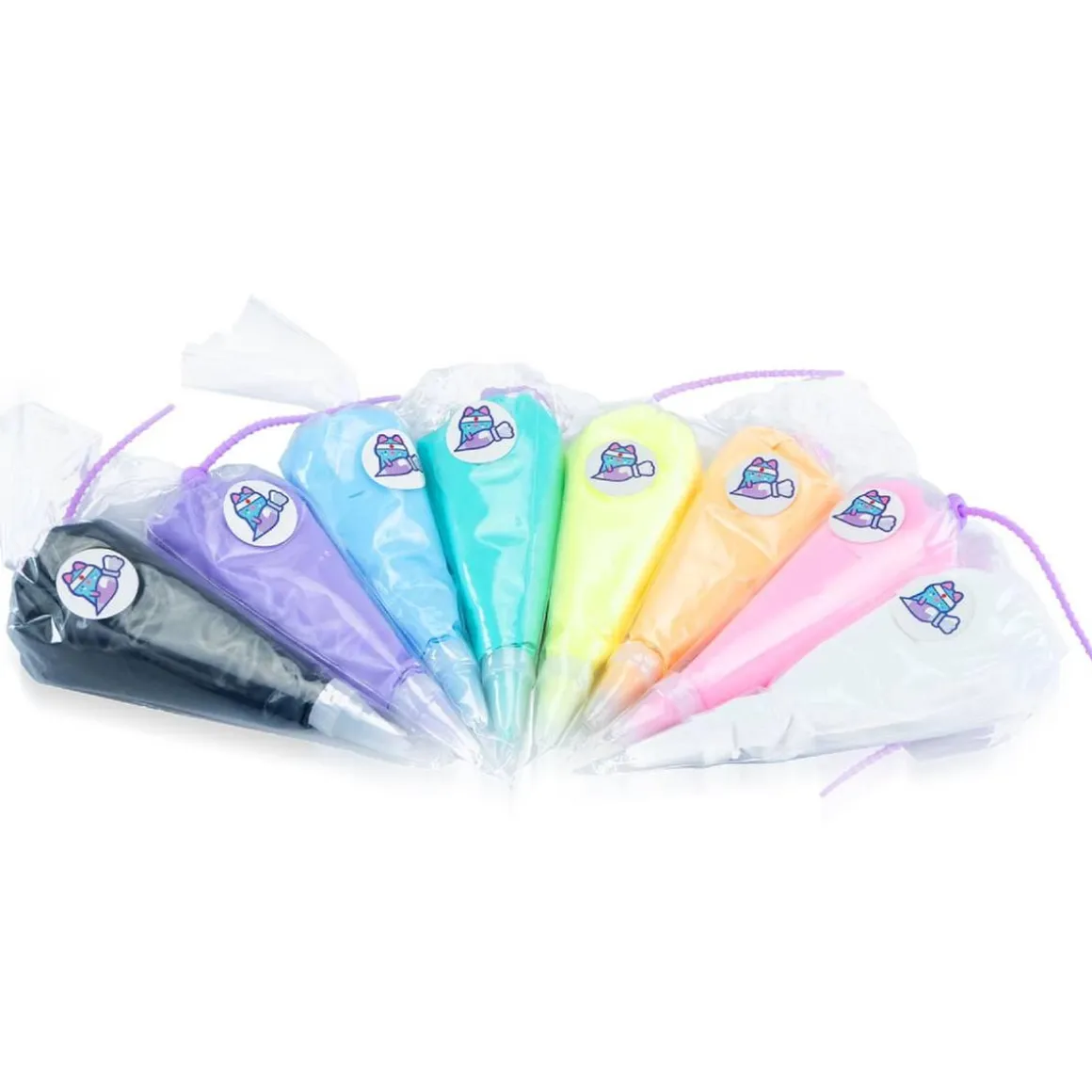 En este mega-set encontrarás 8 bolsas de crema de colores diferentes, múltiples elementos decorativos, 1 espátula, 1 pinza y 4 boquillas metálicas. Cada componente está diseñado para que puedas aplicar la crema decorativa sobre carcasas, estuches, libretas o cualquier superficie lisa, creando acabados únicos y brillantes que reflejan tu estilo personal.