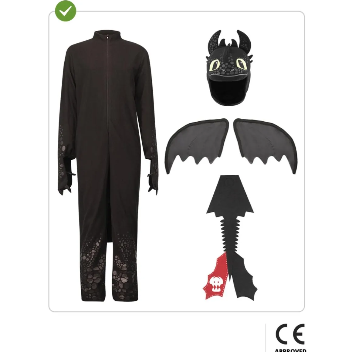 El disfraz de Desdentado en talla 7-9 años es un conjunto mágico para recrear aventuras de dragones. Incluye mono en poliéster negro, gorro con orejas y ojos, más alas y cola desmontables. El tejido ligero asegura libertad de movimiento y horas de comodidad. Su diseño detallado lo convierte en un disfraz reconocible y muy querido. Es ideal para fiestas, juegos de rol o teatro escolar, permitiendo a los niños sumergirse en el mundo de la fantasía.