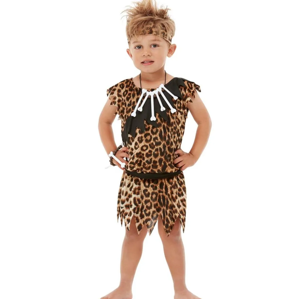 Explora la prehistoria con el Disfraz de cavernícola para niños. Incluye un vestido, cinturón y cinta para la cabeza, todo fabricado en 100% poliéster. Perfecto para carnavales, juegos de rol o funciones escolares. ¡Diversión prehistórica asegurada!