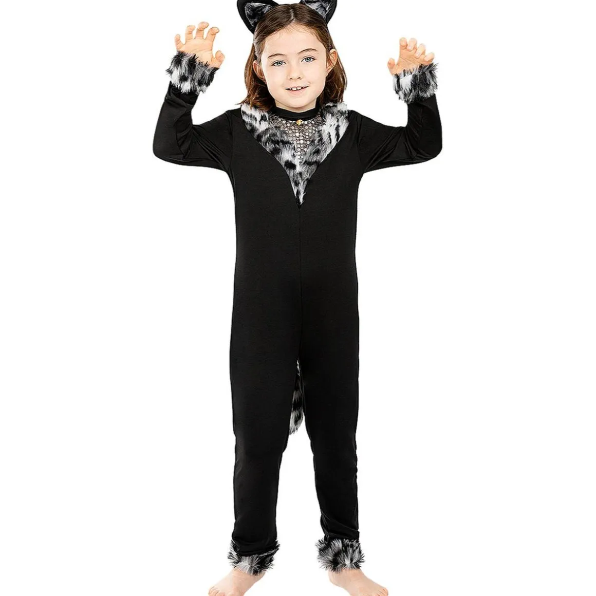 Con el Disfraz de gata para niña, los pequeños estarán adorables. Incluye un mono, gargantilla con cascabel y diadema con orejas, fabricado en 100% poliéster. ¡Perfecto para fiestas temáticas y carnavales!