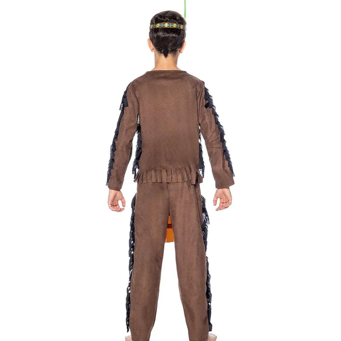 ¡Viaja a las praderas salvajes con este disfraz de indio deluxe para niño! El set incluye pantalón con delantal, camiseta y cinta con pluma para la cabeza, confeccionado en materiales sintéticos resistentes. Los detalles realistas, como los patrones tribales y la pluma decorativa, estimulan el juego imaginativo. Ideal para representaciones escolares, fiestas temáticas o aventuras en casa.