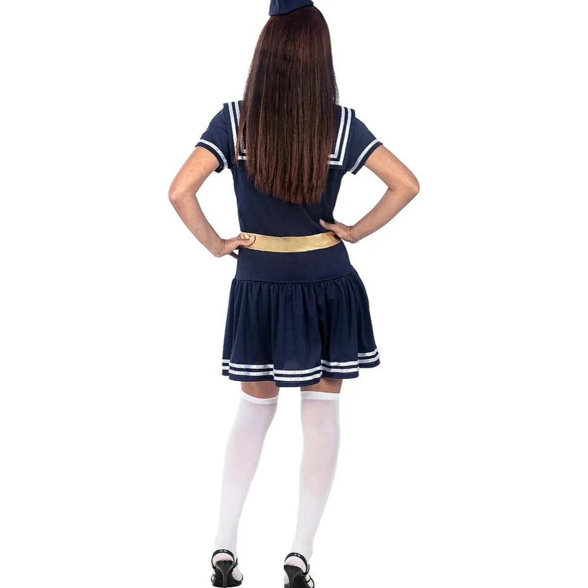¡Deslumbra con un estilo fresco y coqueto en este disfraz de marinera para mujer! El vestido y gorrito, elaborados en 100% poliéster, ofrecen un ajuste cómodo y favorecedor. Los tonos vibrantes y los detalles marineros, como el cuello estilo marinero, te transportarán a un crucero lleno de diversión. Ideal para fiestas de verano, carnavales o eventos donde quieras brillar con un look clásico pero audaz.