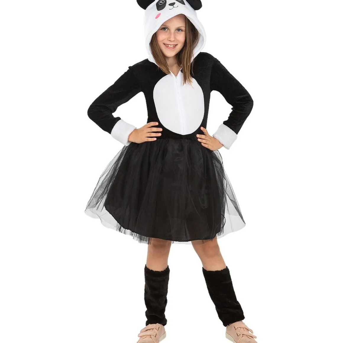 ¡Dulzura y diversión en un solo disfraz! Este adorable vestido de oso panda para niña incluye una capucha con orejas y cubrebotas para un look completo. Fabricado en 100% poliéster, es suave y fácil de llevar. Ideal para cumpleaños, carnavales o simplemente para jugar, este disfraz hará que tu pequeña sea la estrella de cualquier ocasión.
