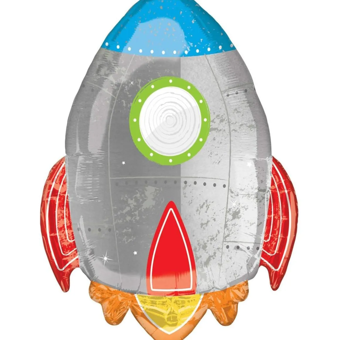 Este maravilloso globo ofrece múltiples posibilidades de uso. Se puede inflar tanto con aire como con helio, permitiendo que se eleve y flote para dar un toque mágico a la decoración. Su tamaño generoso de 53 cm de ancho por 73 cm de alto lo convierte en un llamativo elemento decorativo, ya sea para crear un fondo de fotos espectacular o para darle vida a un candy bar temático. Los detalles muy cuidados del globo, como las escotillas y los remaches del cohete, hacen que sea un atractivo visual que fascinará a los más pequeños.