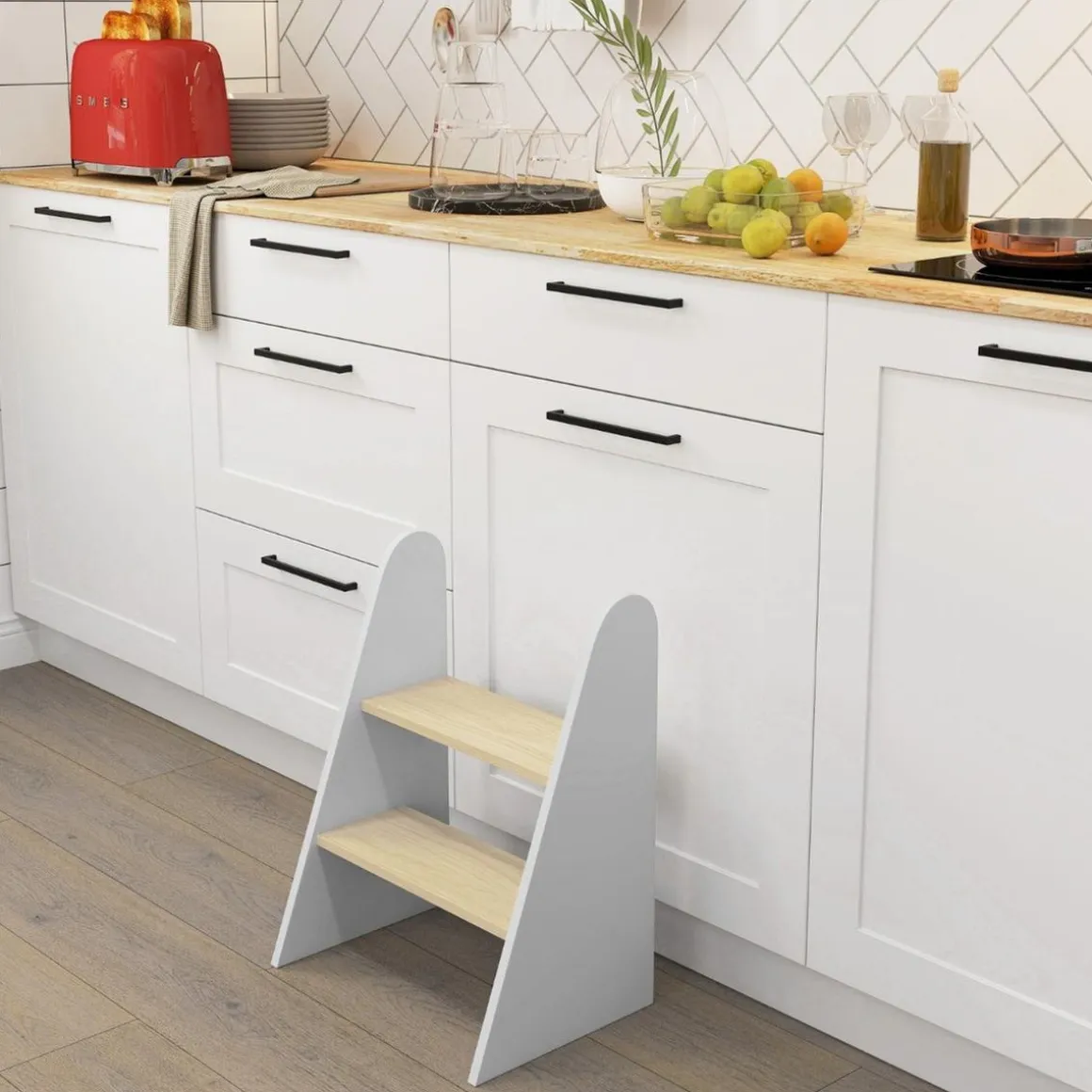 Este taburete infantil de AIYAPLAY es perfecto para ayudar a los pequeños a alcanzar la altura que necesitan para sus actividades diarias de forma segura y sin esfuerzo. Con su diseño de dos niveles y estructura ligera, es fácil de mover y muy práctico.
