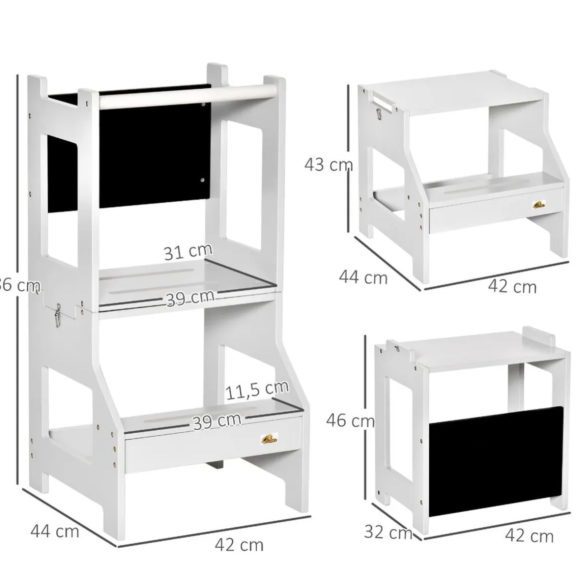 Fomenta la independencia de los peques con esta torre de aprendizaje. Fabricada en MDF con estructura trapezoidal, es segura y estable. Su diseño 2 en 1 permite convertirla rápidamente en una mesa y silla infantil, ideal para pintar o leer cuentos.