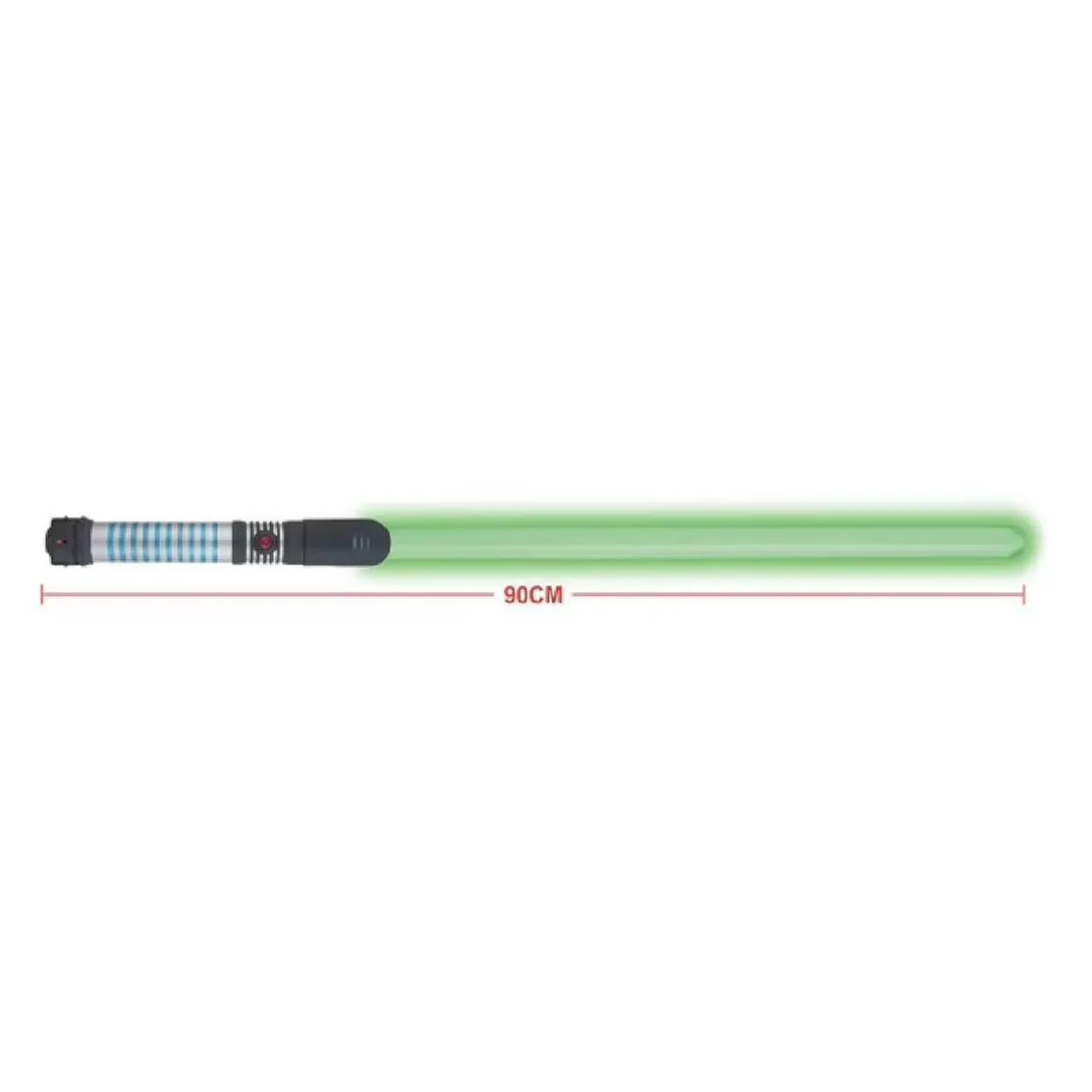 Esta espada luminosa mide 90 cm, aproximadamente, y tiene 2 colores luminosos: azul y verde.
