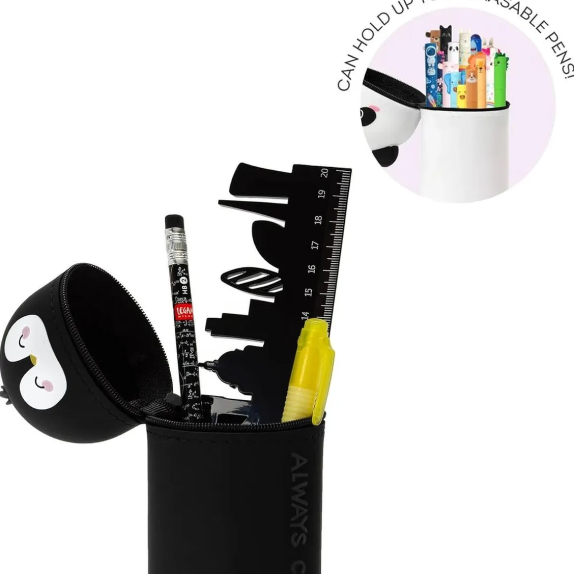 El Estuche escolar kawaii de silicona es la solución ideal para organizar tus útiles escolares con un toque divertido y original. Con su diseño encantador en forma de pingüino y su funcionalidad 2 en 1, este estuche no solo mantiene tus bolígrafos y lápices a salvo, sino que también se transforma en un elegante portabolígrafos de mesa. Gracias a su material de silicona suave y su capacidad retráctil, es extremadamente práctico de usar y se mantendrá firme en cualquier escritorio.