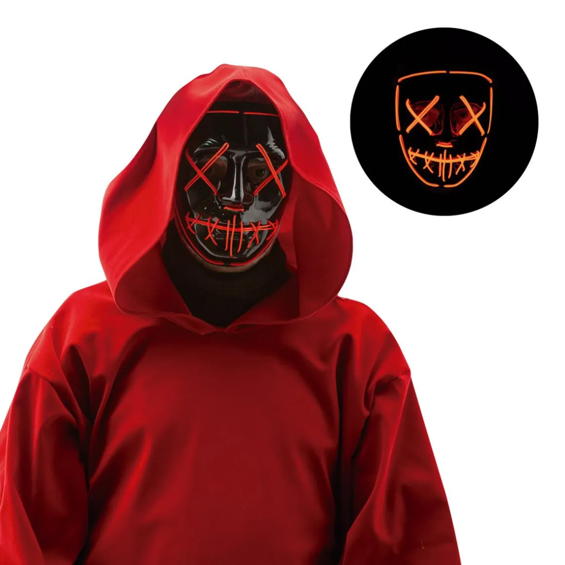 Máscara Maniaco con Luz, una máscara en PVC que es el complemento ideal para un disfraz aterrador.